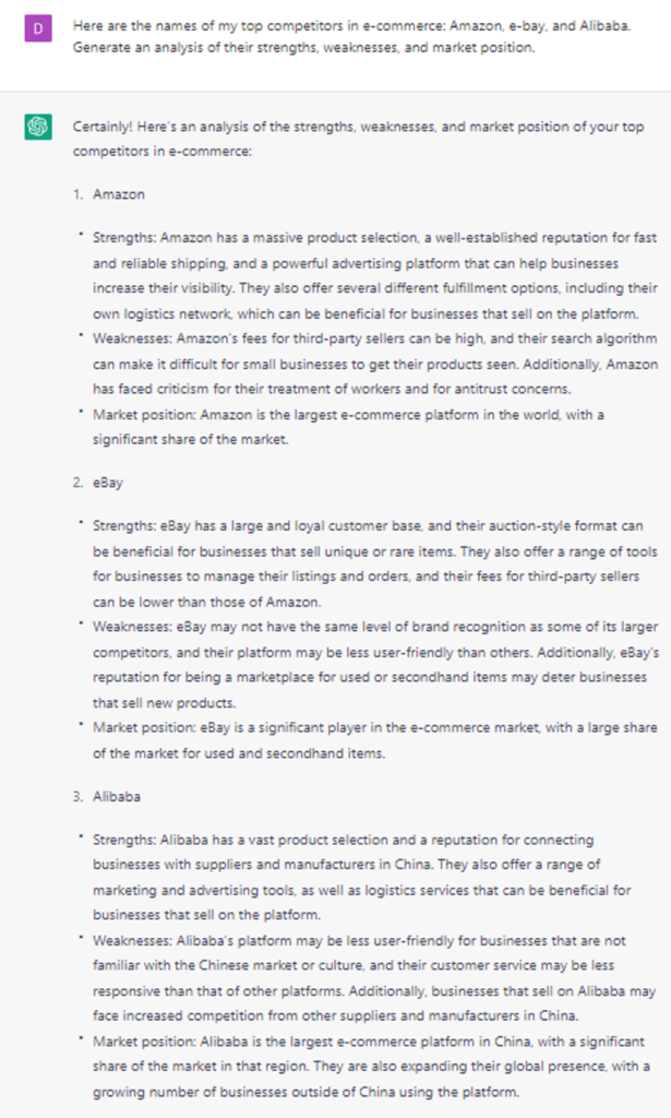- "What are my competitors' [strengths/weaknesses] and how can I use this information to gain a competitive advantage?"