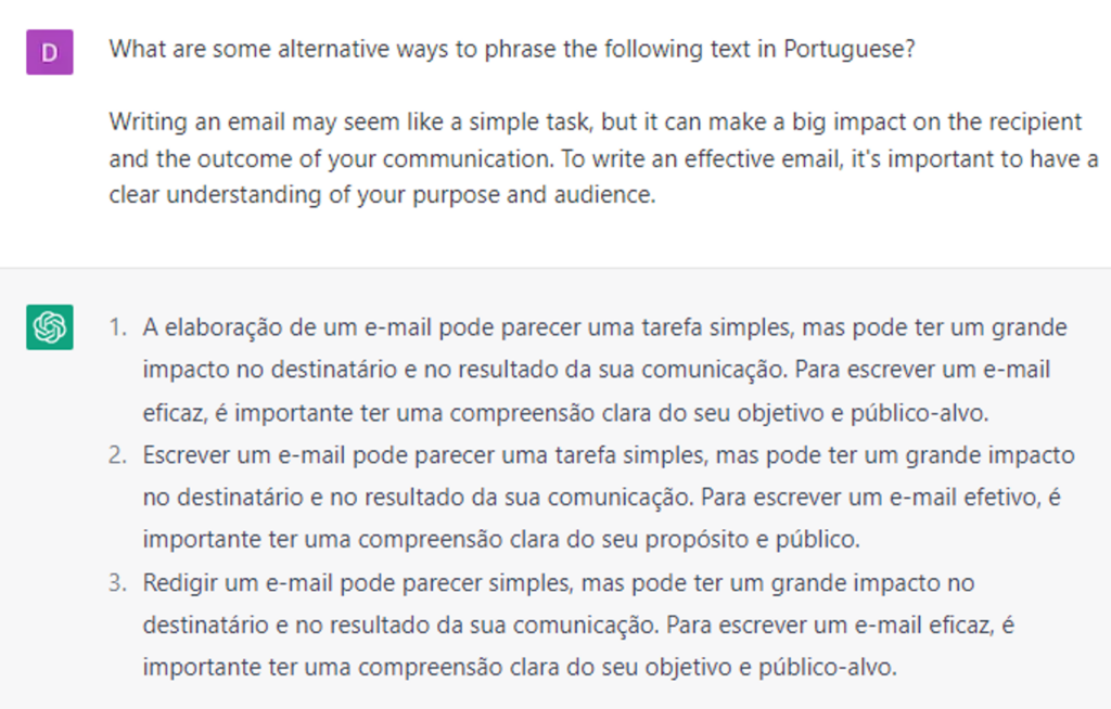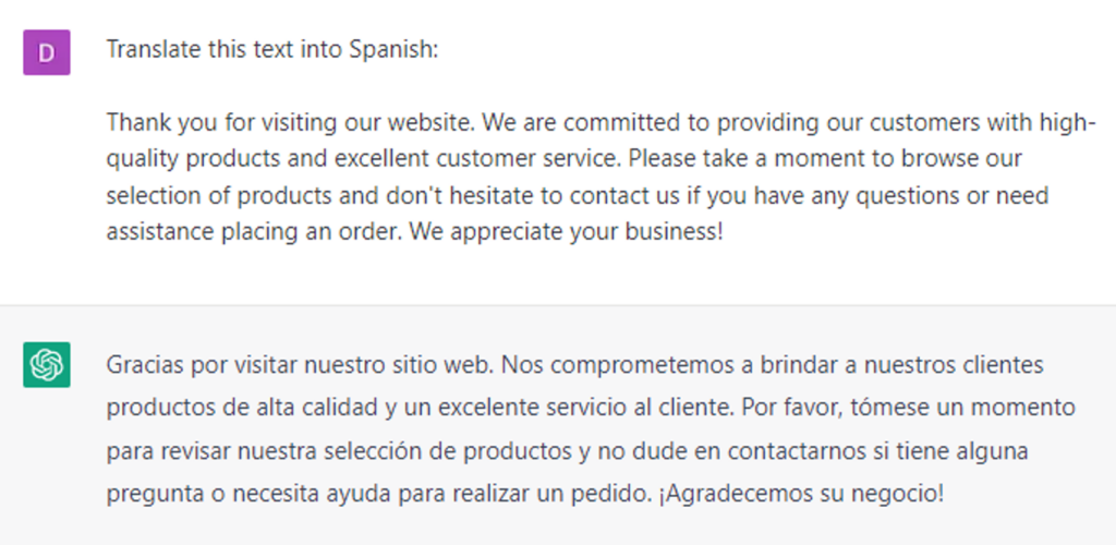 - “Is it possible for Chat GPT to translate this passage into a different language?”